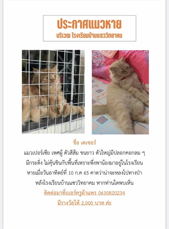 รอยตำหนิ: ขนยาว ตัวใหญ่ หางยาวฟู ที่คอมีขนยาวออกมาเหมือนสิงโต ตาสีน้ำตาลน่ำหนัก 5 กิโล นิสัยขี้กลัว ถ้าเจอคนแปลกหน้าจะวิ่งหนี